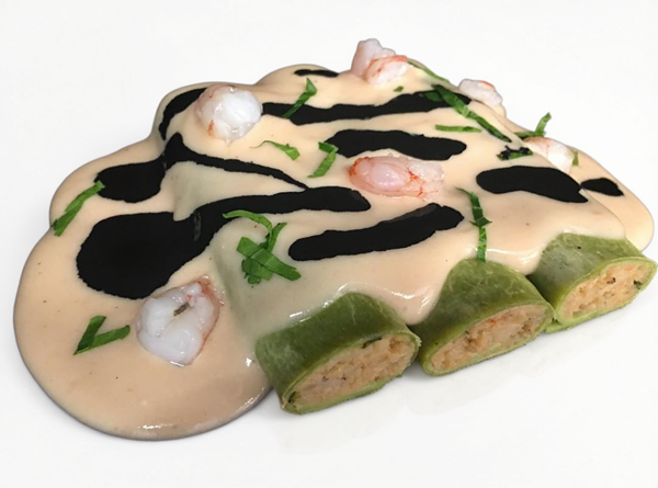 CANELÓN DE ALCACHOFA Y GAMBA – UN