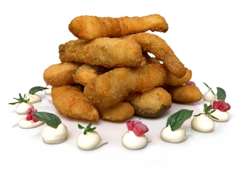 Thin cod strips are breaded in beer paste and bread crumbs, creating an explosion of contrasting flavors and textures. This product triumphs over any appetizer.