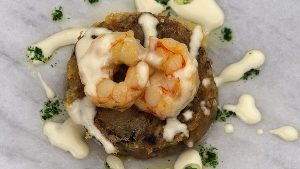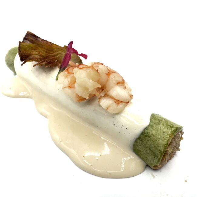 CANELÓN DE ALCACHOFA Y GAMBA – UN