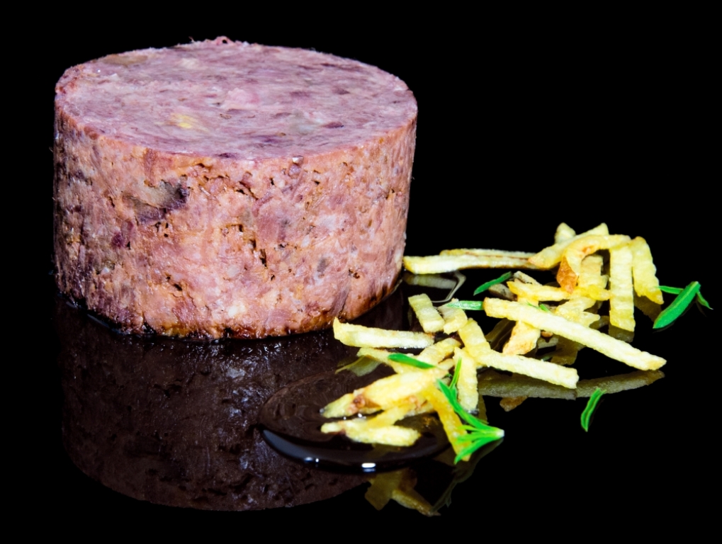 Queue de taureau confite à basse température pour la rendre plus tendre. Désossée et pressée en forme de rouleau. Nous recommandons de la servir dorée à l’extérieur afin de contraster avec le moelleux à l’intérieur.