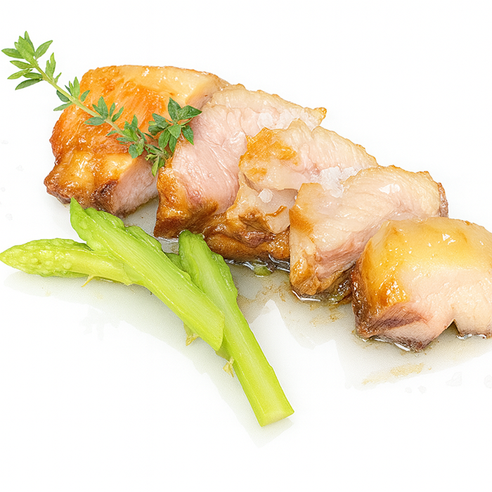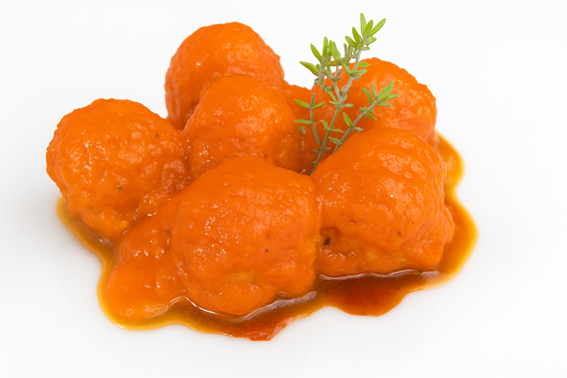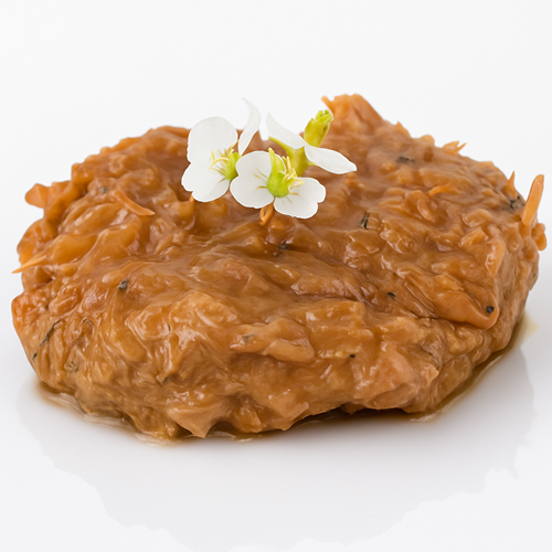 | Preparación | Sin necesidad de descongelar previamente, perforar la parte superior del envase por diferentes puntos. Poner en microondas a máxima potencia (800 W) durante 5-6 min. hasta que la base esté bien caliente. Quizás la salsa necesite batirla un poco para volver a ligarla antes de servir. |
